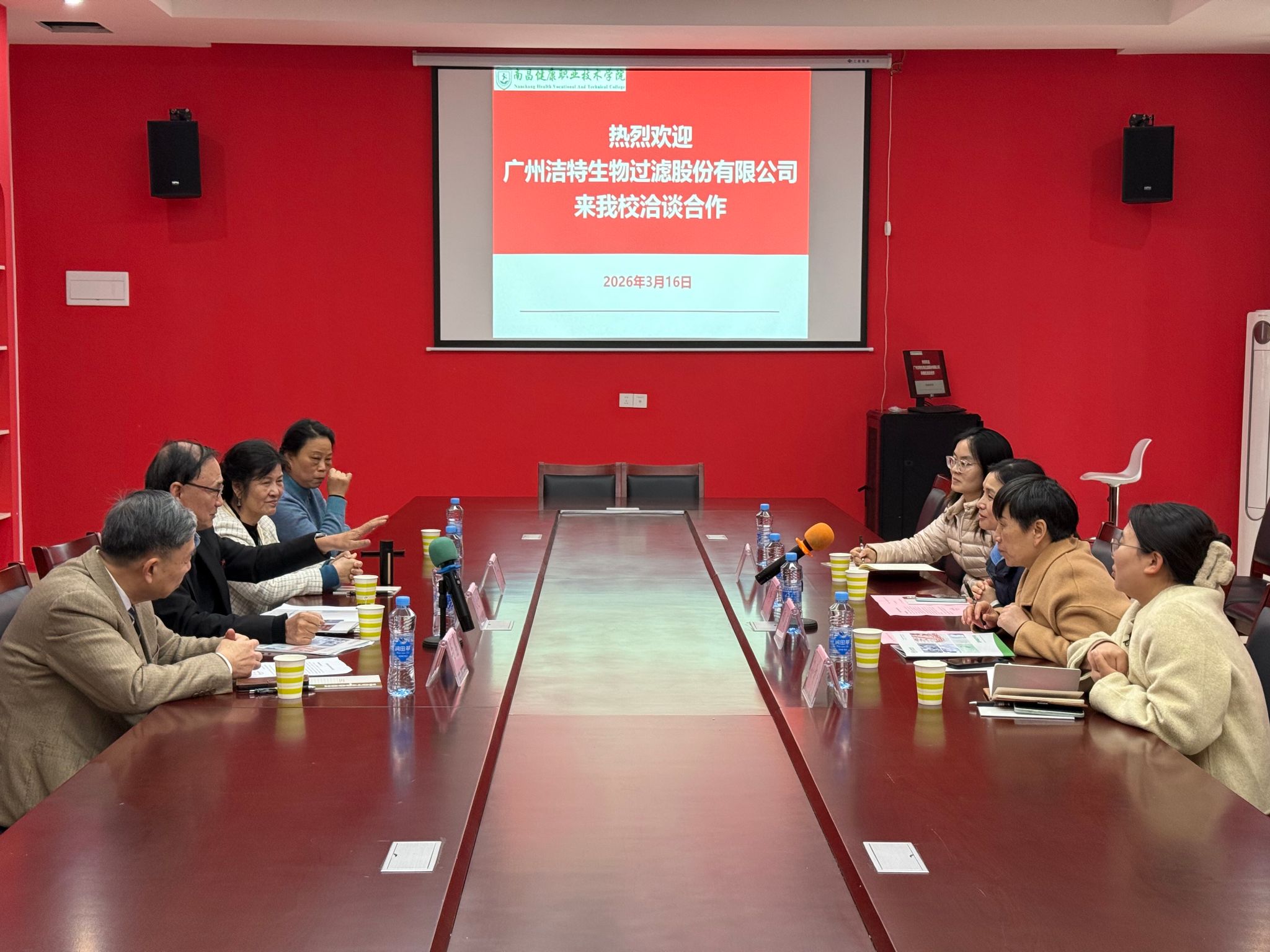 3月16日,广州洁特生物过滤股份公司董事长袁建华先生偕夫人叶江南女士一行专程到访南昌健康职业技术学院,开展校企合作考察洽谈。此次到访,既是为旗下广州南香山医养综合体筹备引进优质医护人才,也是作为学校第74届优秀毕业生对母校的一次深情回访。护理系对袁建华先生一行的到来表示热烈欢迎。