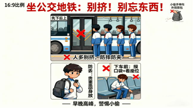 实用小技巧:上车前把手机、钱包放进贴身的口袋,或者拉上拉链的包里,背包最好背在胸前;上下车别挤在车门中间,提前站在车门两边;下车前摸一摸口袋,看看手机、钥匙还在不在,再低头看看座位底下,别落下东西。