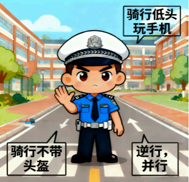 骑行安全需牢记 “三重防护”:未满 16 周岁不骑行电动自行车,使用共享单车时必戴安全头盔;与路边停放车辆、校园巡逻车保持 1 米以上横向距离,路过教学楼门口时提前减速观察;遵守 “靠右骑行、不逆行、不并行” 原则,横穿校园主干道时下车推行。