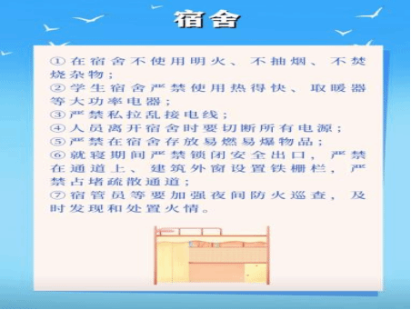 4.严禁在宿舍内吸烟、使用蜡烛、焚烧杂物;
