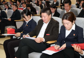 在庄严的国歌声中,党员大会正式拉开帷幕。