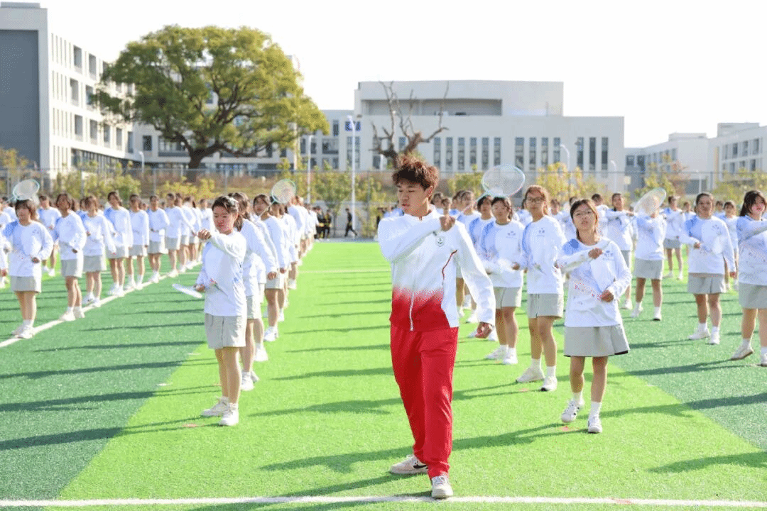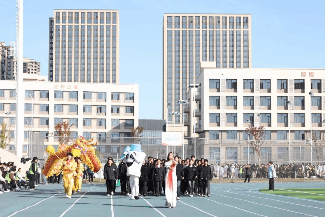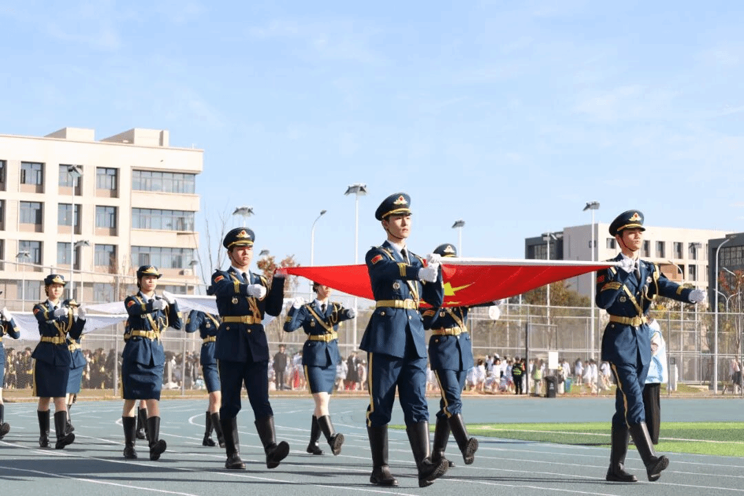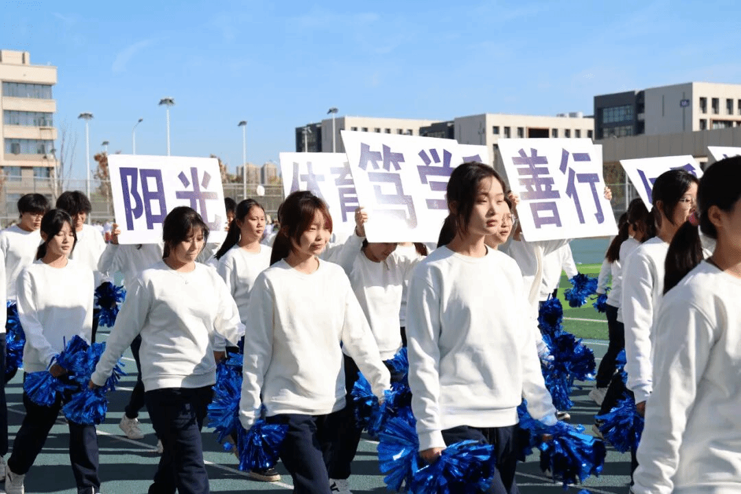 紧随其后的校旗方阵昂首挺胸,展现着学校的精神内核;五彩斑斓的彩旗方阵挥舞旗帜,如流动的彩虹装点赛场。