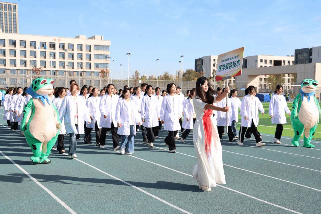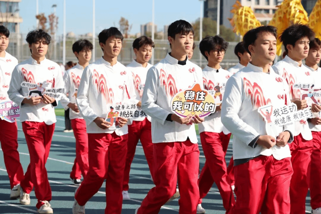 各院系运动员方阵身着统一服装,精神抖擞、口号嘹亮,步伐整齐地走过主席台,充分展现了健康学子朝气蓬勃、奋发向上的精神风貌。