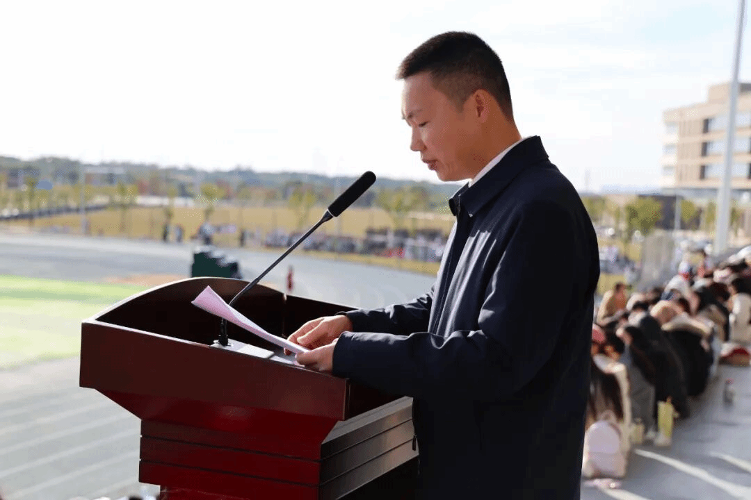党委委员、纪委书记卢涛致开幕词,她代表学校党政领导班子,向运动会的顺利开幕表示热烈祝贺,向辛勤筹备的工作人员、刻苦训练的运动员以及关心支持学校体育事业的各界朋友致以诚挚感谢与崇高敬意。她指出,体育是强健体魄的锻炼、意志品质的磨砺、团队精神的凝聚,更是展示青春风采。她希望全体运动员秉持“友谊第一,比赛第二”的体育道德和“勇攀高峰,挑战自我”的体育精神,在赛场上绽放青春、超越自我;希望全体裁判员严守规程、公正裁决,全体工作人员忠于职守、热情服务,全体观众文明观赛、热情鼓励,共同营造有序、安全、热烈、和谐的竞赛环境。