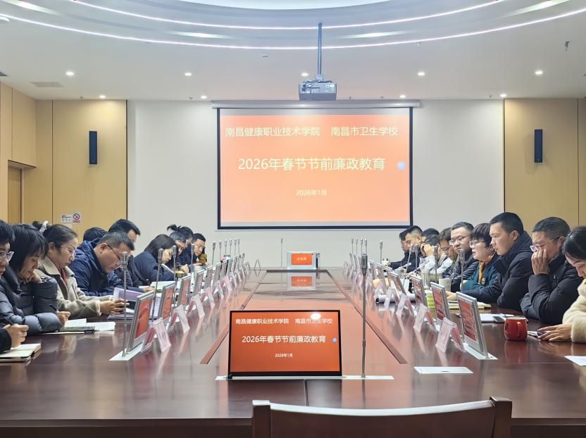 春节将至,为深入贯彻落实全面从严治党要求,严防节日期间“四风”问题反弹回潮,营造风清气正、崇廉尚俭的节日氛围,1月26日南昌健康职业技术学院召开2026年春节节前集体廉政教育会。学院领导、全体中层干部出席会议。