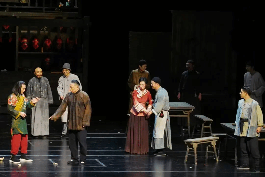 如果说《生命册》的改编主要是做“减法”,那么《俗世奇人》就是在巧妙地做“加法”。冯骥才的同名短篇小说集一人一记、各不相干,没有固定场景和贯穿全书的人物,话剧《俗世奇人》编剧黄维若创造性地增加了贯穿全剧的老板娘关二姐为主要人物,以她为线、串珠成链,带有古典小说意味的叙事策略高度契合现代戏剧的结构要求。正如人民日报社文艺部原主任、高级编辑刘玉琴所说,话剧《俗世奇人》对小说的差异化和贯通性改编,充分体现了由文学向舞台转化的神奇魅力。