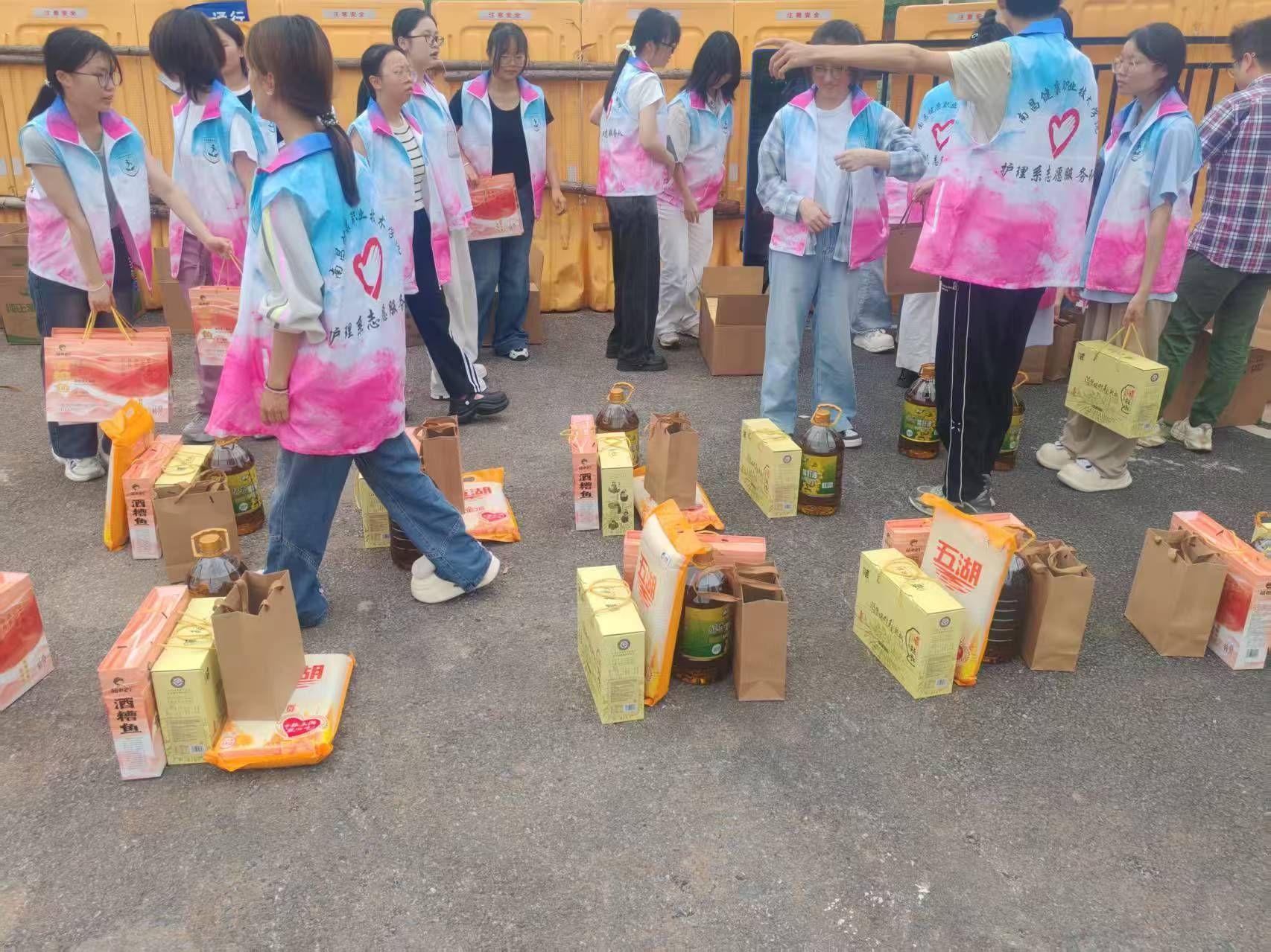 活动当天,精心准备的农副产品礼包被有序发放至每一位教职工手中。礼包内包含了来自帮扶村的特色美味:香气醇厚的脯辣椒、风味独特的酒糟鱼、品质纯正的菜籽油以及营养丰富的进贤黑芝麻与大米组合。这些实实在在的农产品,承载着学院的关怀与帮扶村的情谊。