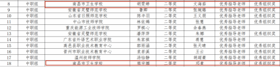 其中,中职选手熊宇娜、胡雯婷均荣获二等奖;高职选手邓蕊、黄榕分获二等奖与三等奖。指导教师邓青、胡蓉、文海茹获评“优秀指导教师”,学校中、高职组别均荣获“优秀组织奖”。