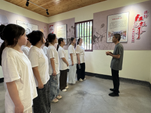 祭扫结束后,实践队一行来到坊楼镇大沿背片区联合理事会工作室。聆听工作人员讲述沿背村的红色过往,队员们对这片土地的革命根基有了更深刻的认识。随后,大家踏访甘祖昌将军故居 ——“双色”砖瓦错落有致,旧物陈列静默无声,每一件展品都在诉说着将军“解甲归田、扎根乡村”的峥嵘岁月。队员们驻足凝视,在泛黄的照片与斑驳的农具中品读将军故事,于历史回响中感悟“初心不改、奉献一生”的信仰力量,更坚定了服务社会、扎根基层的使命担当。