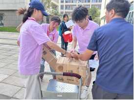 校园内身穿紫色系服的身影格外亮眼 —— 他们是护理系24级的学生志愿者,从到报道区的“流程协助”,再到校园内的“路线指引”,再到行李的“拖车搬运”,全程为新生提供暖心服务。“同学,报道区往这边走,我帮你拿行李吧!”“这扇子给你,食堂在这边,实训楼在那边,有问题可以随时找我!” 志愿者们的热情问候与主动帮助,成为校园里最温暖的风景线。