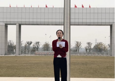伴随着激昂的《义勇军进行曲》,五星红旗迎风展开、冉冉升起。全体师生肃立凝视,目光紧紧追随国旗攀升,嘹亮的歌声汇聚成一股承载信念的洪流,回荡在广场上空。