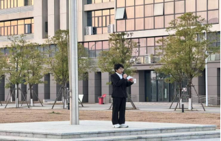 活动伊始,迎着凛冽的晨风,校国旗护卫队队员身着整齐制服,迈着铿锵有力的正步整齐列队入场。他们身姿挺拔、目光坚定,以标准规范的队列动作护送五星红旗走向升旗台,每一步都彰显着青年学子的蓬勃朝气与责任担当。伴随着雄壮激昂的《义勇军进行曲》,五星红旗冉冉升起,全体师生肃立注目,齐声高唱国歌,激昂的旋律与真挚的爱国情怀在校园中久久激荡。