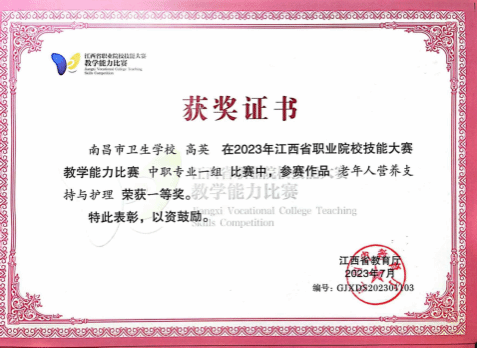 教师个人荣誉:高英、李蕾、严敏、胡静获江西省职业院校技能大赛教学能力比赛一等奖