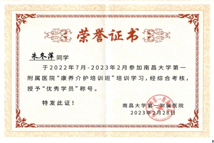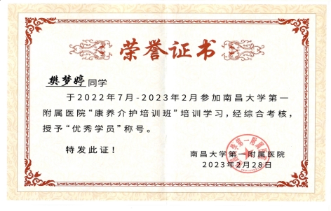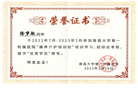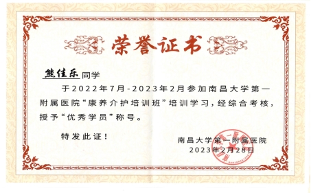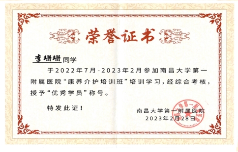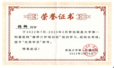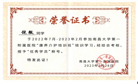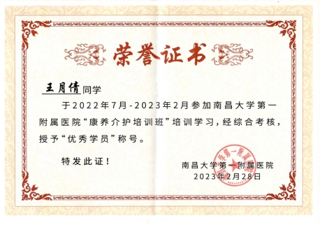 项目名称:南昌大学第一附属医院“康养介护培训班”培训学习(主办单位:南昌大学第一附属医院)