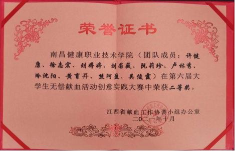 (三)组织荣誉:南昌健康职业技术学院荣获二等奖