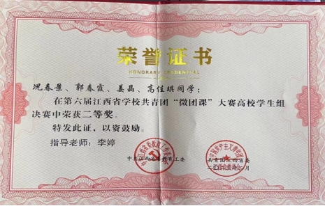学生个人荣誉: 况春景、郭春霞、姜晶、高佳琪获高校学生组二等奖