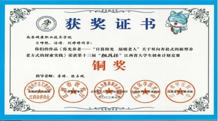 项目名称:第十三届“桃战杯”江西省大学生创业计划竞赛(主办单位:共青团江西省委员会、江西省教育厅、江西省人力资源与社会保障厅、江西省科学技术协会、江西省学生联合会联合主办)