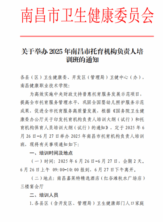 5. 2025年 南昌市托育服务与管理工作培训班(第一期)