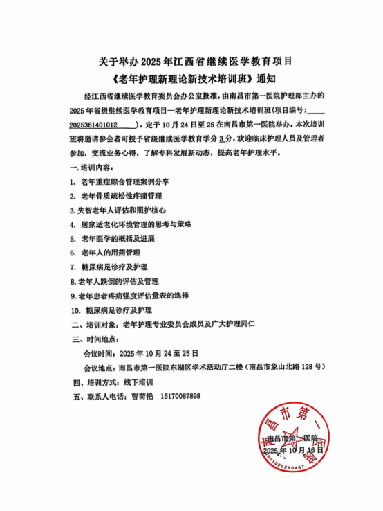 9. 2025年 省级继续医学教育项目--老年护理新理论新技术培训班专题讲座专家