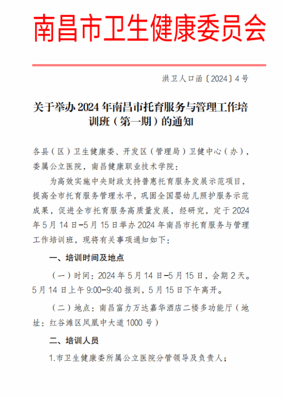 4. 2024年 南昌市托育服务与管理工作培训班(第一期)
