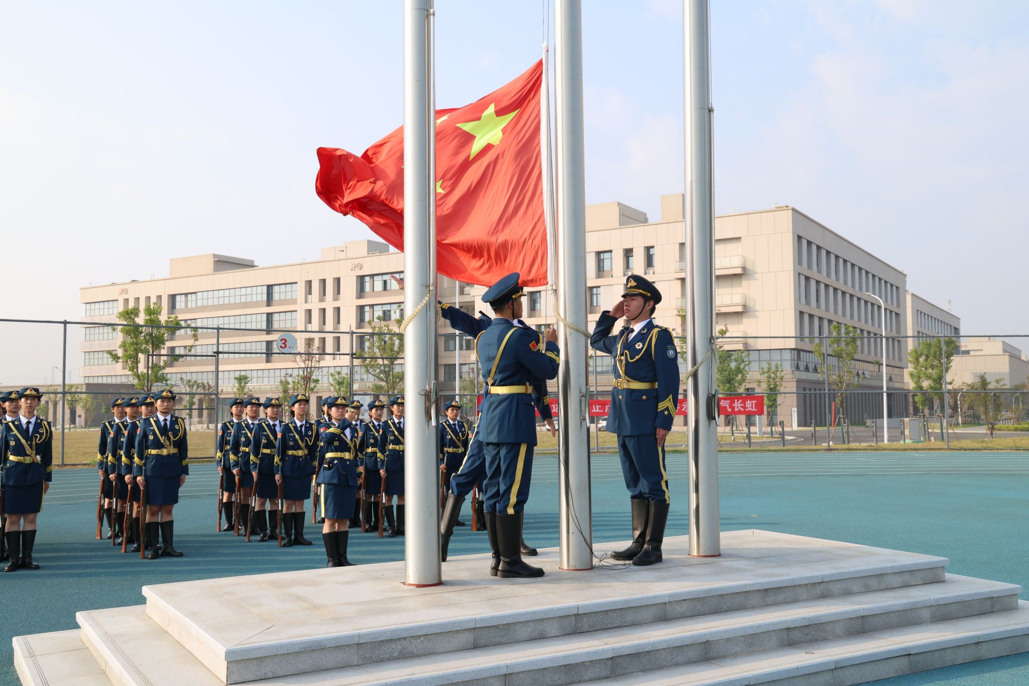 国旗护卫队迈着铿锵有力的步伐,护送国旗缓缓走向旗杆下。伴随着庄严的国歌声,五星红旗冉冉升起,2025级新生们目光如炬,在晨曦中凝望着飘扬的国旗,将炽热的爱国热忱深深熔铸于青春信念之中。