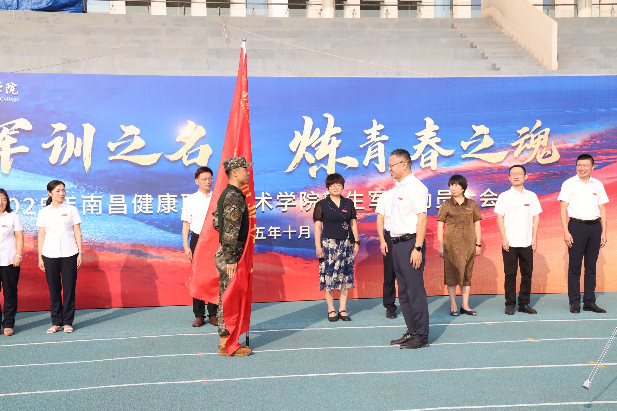 2025年10月13日上午,南昌健康职业技术学院2025级新生军训开训仪式在体育场举行。学校全体领导班子成员出席,学校相关职能处室负责人、各系党支部书记、学工办主任、全体教官、新生辅导员与全体2025级新生共同见证了这一庄严时刻。