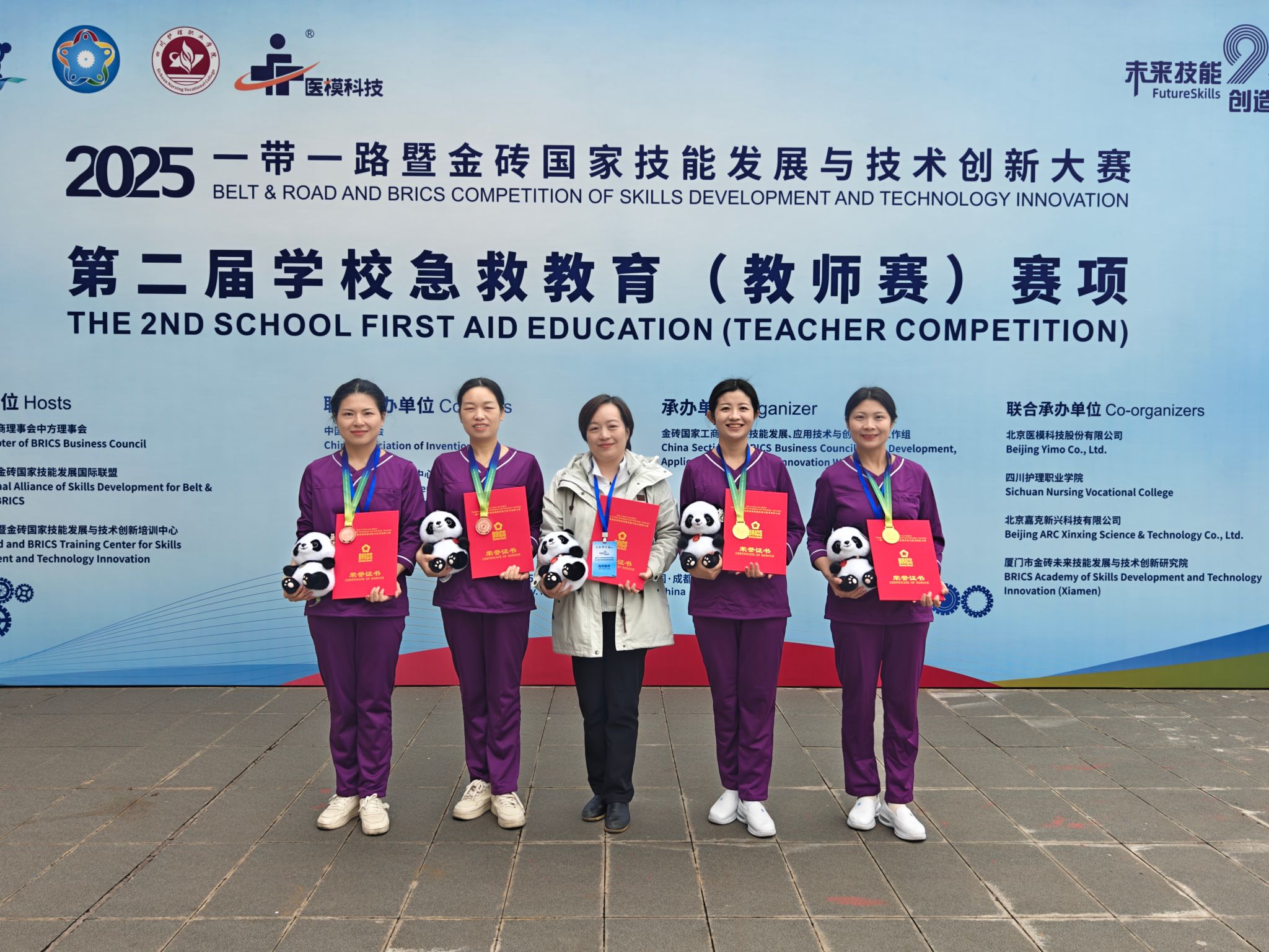 在2025“一带一路”暨金砖国家技能发展与技术创新大赛之第二届学校急救教育(教师赛)全国总决赛中,我校教师代表队与来自全国本科、高职、中职院校的优秀教师同台竞技,凭借扎实的专业功底和出色的现场表现,斩获多项大奖。