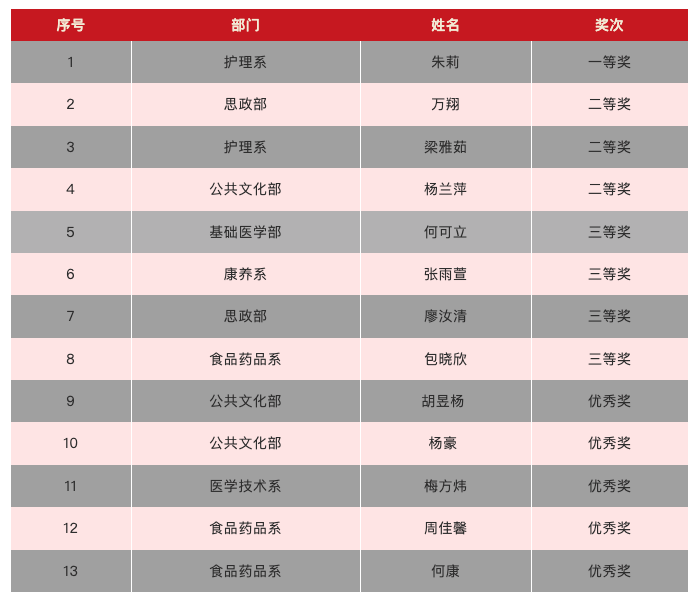 经过激烈角逐,最终评选出一等奖1名、二等奖3名、三等奖4名、优秀奖5名。