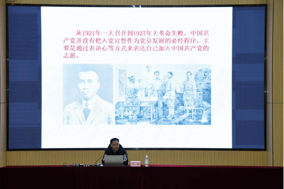 党课伊始,于韧以入党誓词的历史演进为切入点,系统梳理了从红军时期到新时代入党誓词的五次变迁,生动阐释了誓词中 “严守纪律”“牺牲个人”“为共产主义奋斗终身” 等核心表述的时代内涵。他指出,入党誓词的 “变” 折射着不同历史时期的使命要求,而 “不变” 的是共产党人对党忠诚的政治品格、服务人民的根本宗旨和艰苦奋斗的优良作风。结合 PPT 中的历史史料与典型案例,于韧深入剖析了 “我志愿加入中国共产党” 的初心意蕴,强调 “志愿” 二字背后是自觉自愿的信仰选择,是终身践行的庄严承诺。