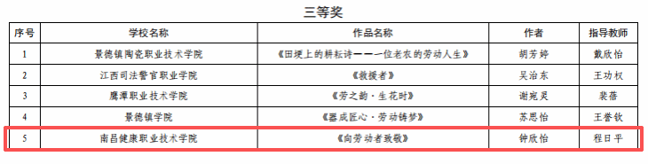 近日,江西省教育厅公布2025年全省大中小幼劳动教育宣传展示作品评选结果,我校选送的劳动清单作品与劳动教育海报作品凭借鲜明的职业教育特色、扎实的实践内涵和创新的呈现形式,双双荣获三等奖,为学校劳动教育工作再添亮丽成绩单。