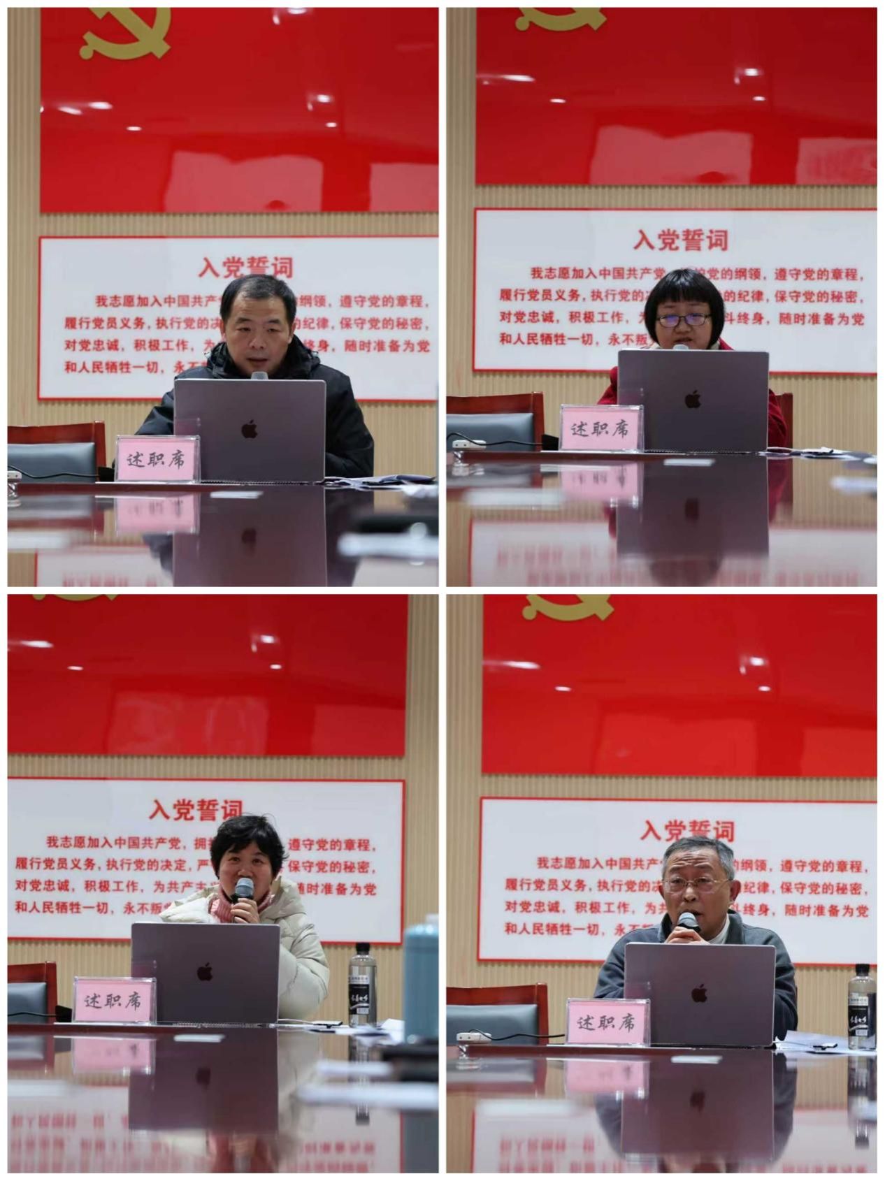 述职大会上,机关第一党支部、机关第二党支部、机关第三党支部、护理系教职工党支部、护理系学生党支部、康养系党支部、食品药品系党支部、医学技术系党支部、思政部党支部、公共文化部党支部、基础医学部党支部的书记依次登台述职。