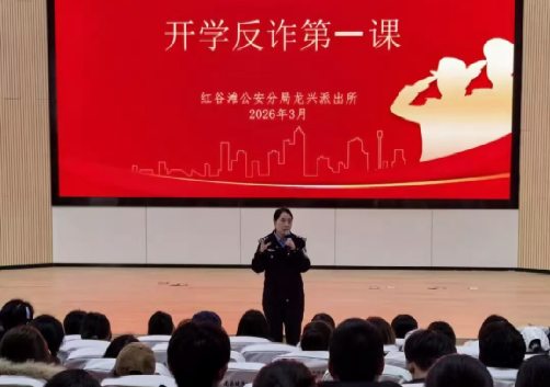 针对校园电信网络诈骗高发问题,3月6日下午,学校特邀红谷滩公安分局龙兴派出所黄甜、欧阳辉羽民警走进校园,开展“开学反诈第一课”专题讲座。200 余名学生代表现场参与。讲座结合校园诈骗典型案例,剖析诈骗手段、普及防范技巧,切实提升学生识诈、防诈、反诈能力,守护学生财产安全,维护校园和谐稳定。