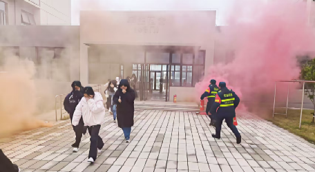 3月13日下午,学校聚焦学生宿舍这一人员密集重点场所,开展消防疏散实战演练。演练前,学校制定详细应急疏散预案,明确疏散路线、避险点位等要求,对宿管人员、辅导员、学生骨干开展岗前培训。演练现场,烟雾模拟火情扩散,学生在工作人员引导下,捂住口鼻、弯腰低姿快速有序撤离,全程秩序井然,顺利抵达指定安全区域。此次演练切实提升了学生应急避险、自救互救能力,筑牢宿舍安全最后一道防线。