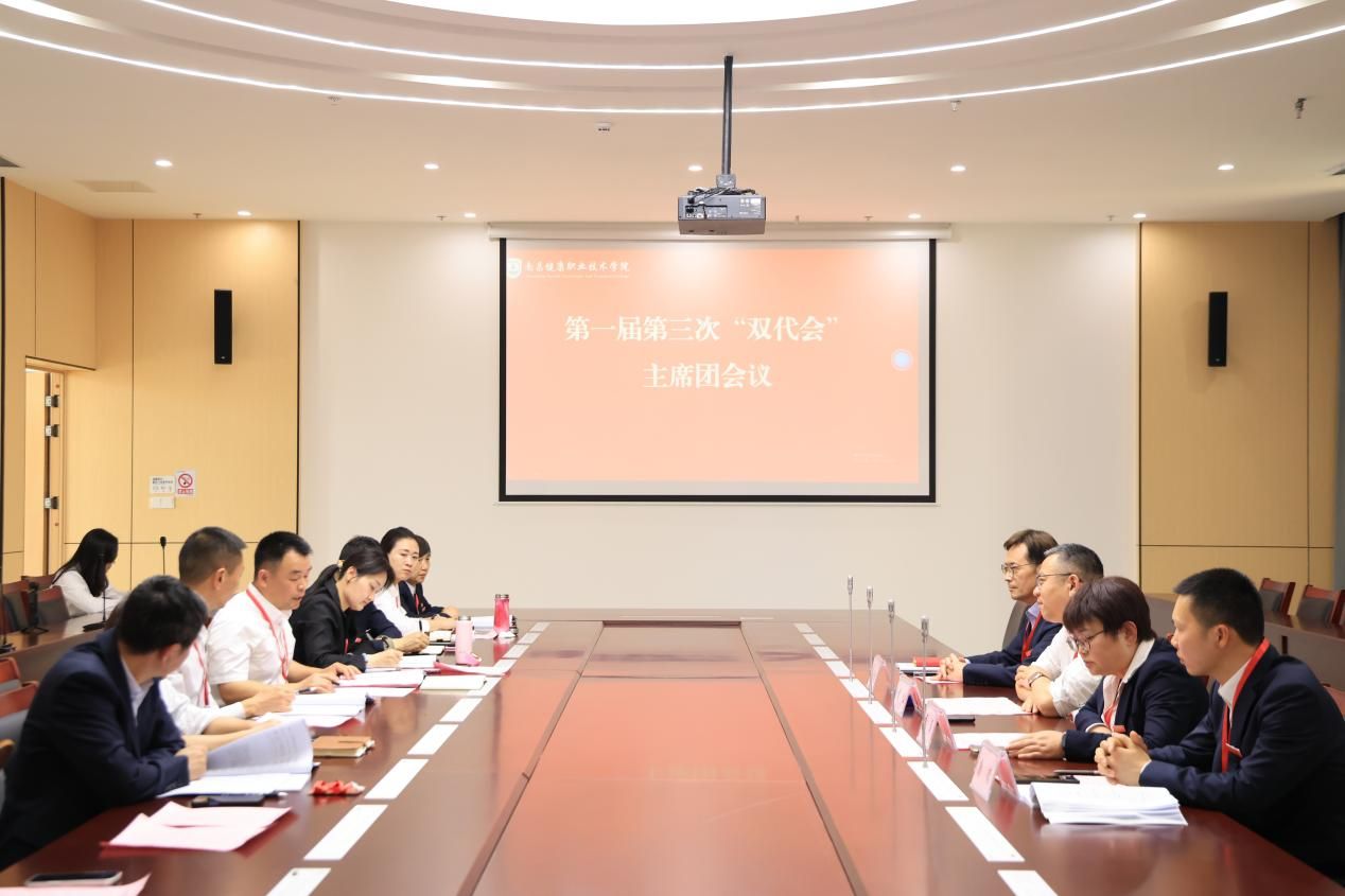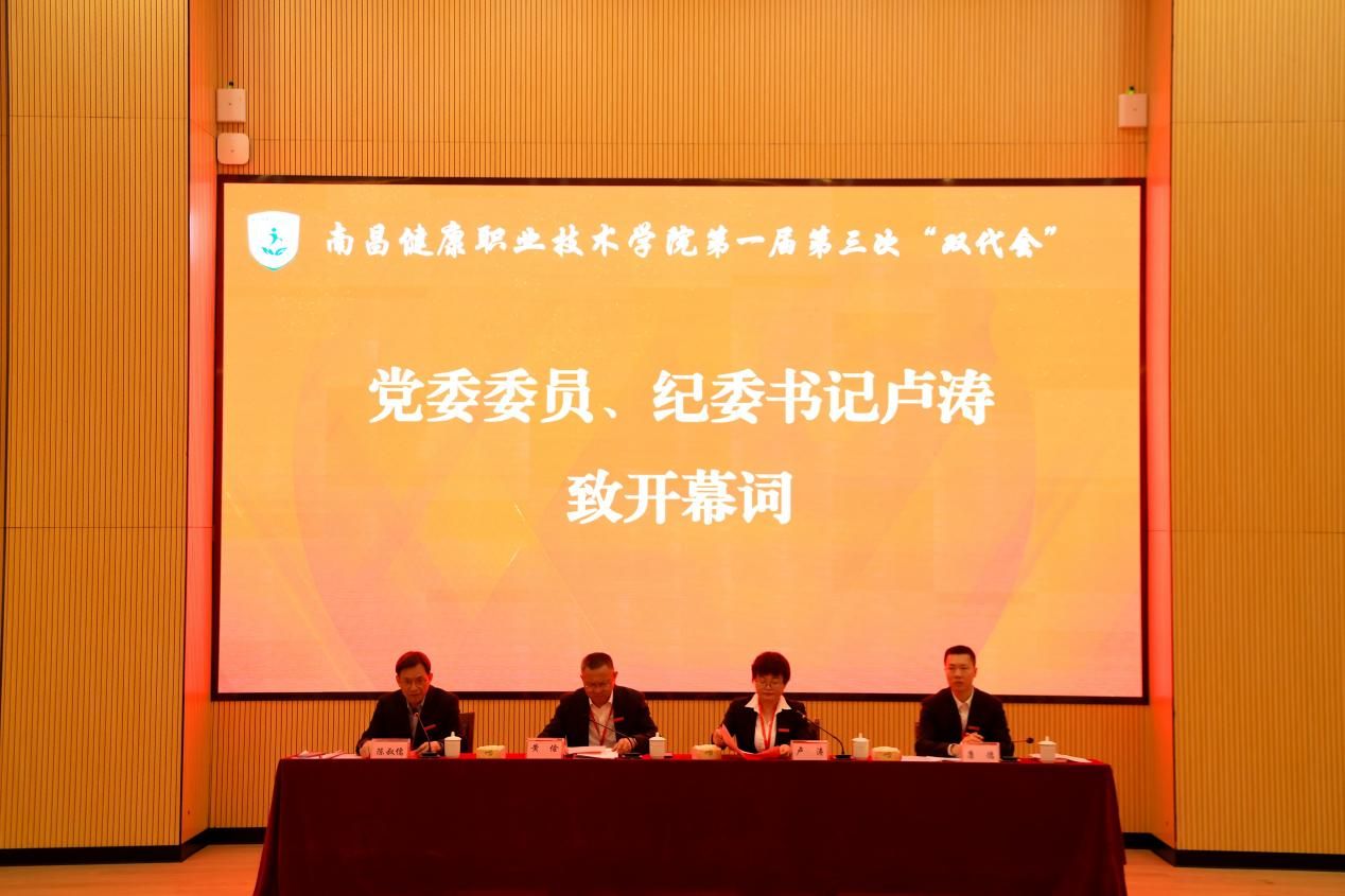 4月18日,南昌健康职业技术学院第一届第三次教职工代表大会暨工会会员代表大会(简称“双代会”)在图书馆二楼报告厅隆重召开。学院党委书记、院长黄俭,党委委员、纪委书记卢涛,党委委员、副院长陈叔儒,党委委员、副院长康德出席大会,全体正式代表、列席代表齐聚一堂,共商学院发展大计,共绘“十五五”事业发展蓝图。