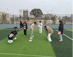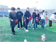 闯福挑战区的“踏福”“夹福”游戏充满刺激,同学们化身闯关达人,全神贯注投入挑战,凭借实力赢取印章,竞技乐趣让现场氛围持续升温。福趣翻翻乐区域的“福卡消消乐”“新年滚滚乐”惊喜不断,戴眼罩推易拉罐挑战中,趣味互动与幽默调侃让现场笑声连连。校领导、老师与同学们一同沉浸式感受活动的欢乐氛围,在紧张刺激的乐趣挑战中享受新年的氛围。