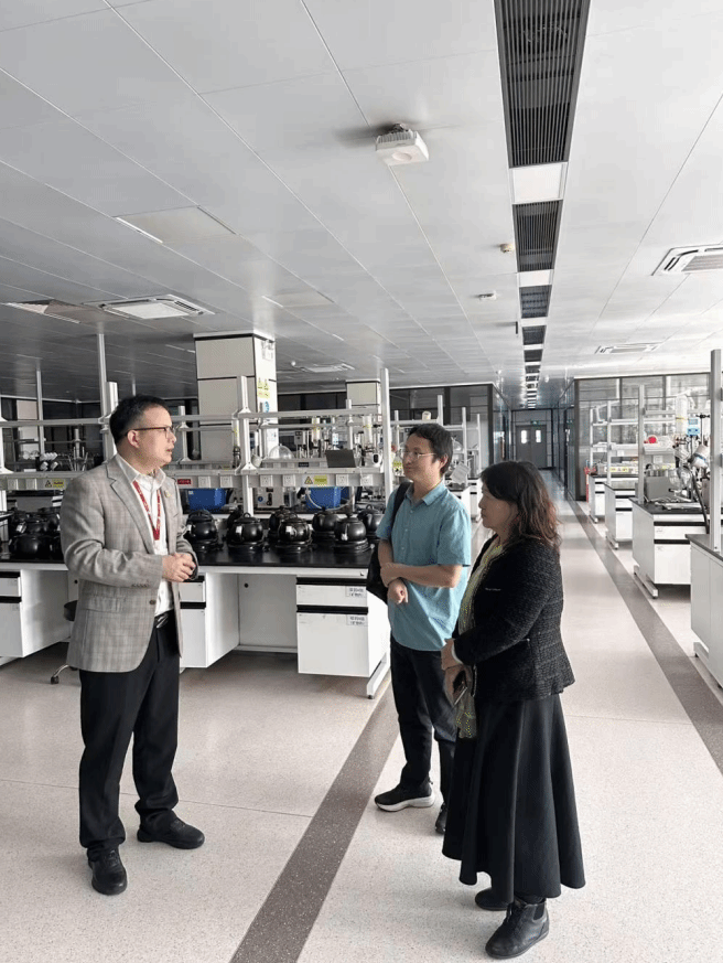 在广东省南山医药创新研究院,考察组与研究院及合作企业代表进行座谈交流。食品药品系党支部书记全面介绍了学校的历史渊源、办学规模,以及系部实习就业基地建设现状、专业人才培养优势,明确表达了寻求多领域合作、搭建人才输送桥梁的意愿。呼研所医药科技(佛山)有限公司总经理刘小龙结合行业发展趋势,提出了精准合作方向,建议双方联动关联企业,推动食品专业人才投身功能性食品研发与生产,中药专业人才涉足化妆品研发领域,同时表示可协助对接研究院合作的本地工业园企业,为学生拓展更多实习就业岗位。广东省南山医药创新研究院办公室主任张静介绍了研究院的职能定位、科研布局与人才需求,明确表达了对药学专业人才的需求,愿与系部建立长期稳定的合作关系。