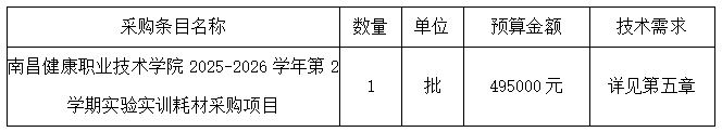 项目名称:南昌健康职业技术学院2025-2026学年第2学期实验实训耗材采购项目