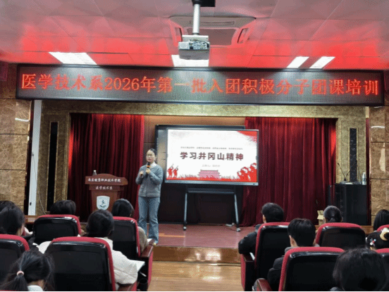 医学技术系党支部组织委员郭珍珍老师以《井冈山精神》为题,为入团积极分子带来了一堂深刻而富有感染力的主题团课。她以“井冈山精神的时代回响”为引,通过珍贵历史资料与动人革命故事,生动诠释了井冈山精神“坚定信念、艰苦奋斗,实事求是、敢闯新路,依靠群众、勇于胜利”的深刻内涵。同学们不仅深切感受到红色精神中跨越时空的信仰力量,更深刻理解了井冈山精神作为中国革命精神源头的重要意义。