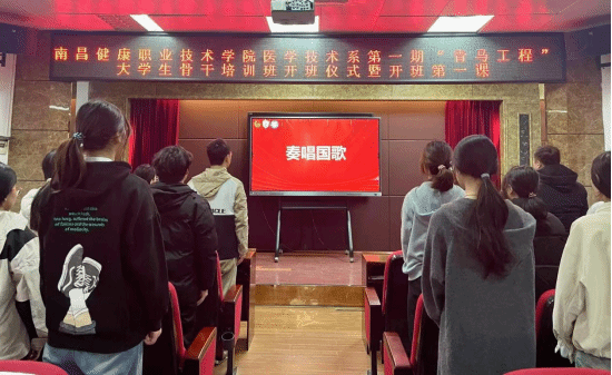 为深入贯彻落实习近平总书记关于青年工作的重要思想,着力为党培养和输送一批信仰坚定、能力突出、素质优良、作风过硬的青年政治骨干,3月16日早上,医学技术系第一期“青马工程”大学生骨干培训班在东湖校区办公楼三楼学术报告厅举行开班仪式。医学技术系党支部书记、副书记、系部团总支书记、辅导员老师出席仪式,开班仪式由系团总支书记主持。