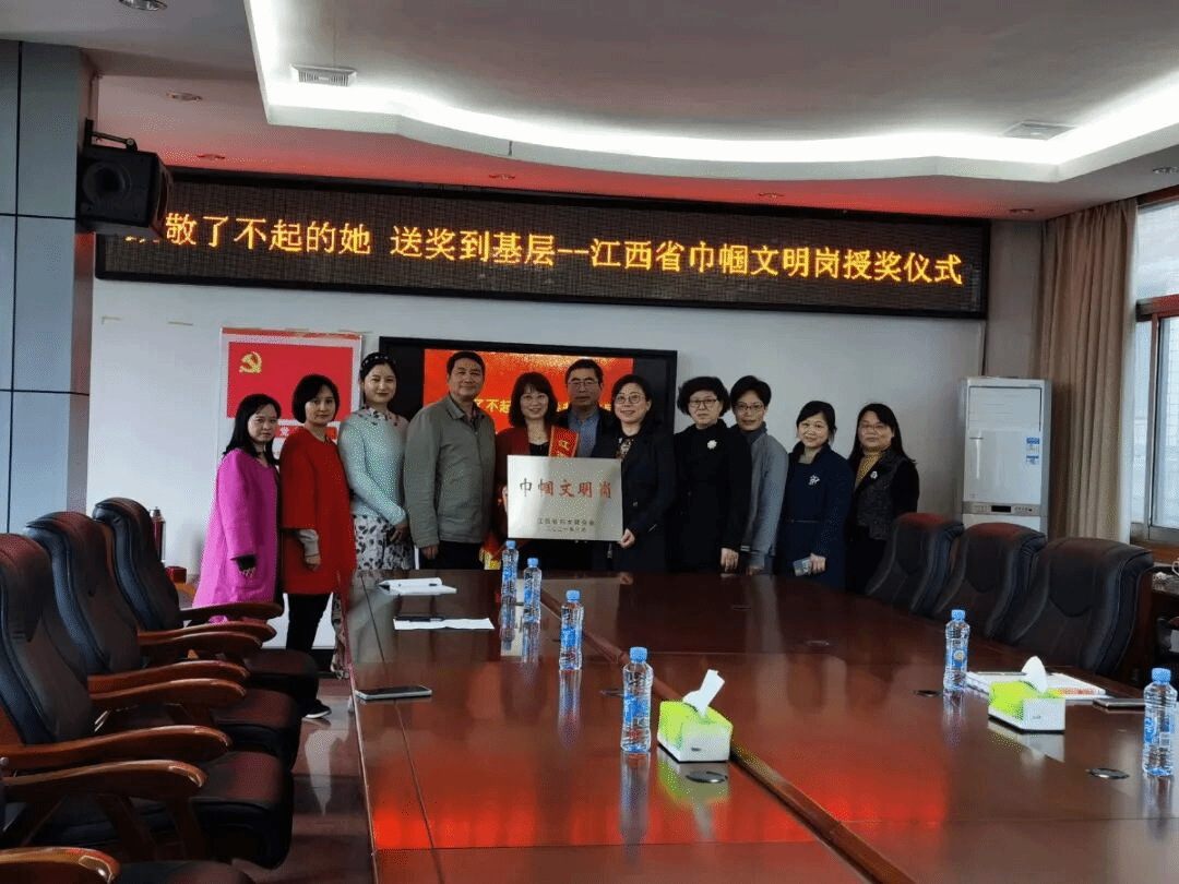 春风送暖,欣欣向荣,4月15日下午,南昌市卫生学校在七楼会议室举行了江西省巾帼文明岗授奖仪式。南昌市妇联党组成员、副主席黄朝华,市妇联妇女发展部部长黄玲焦来到学校为德育教研室绶带并颁发奖牌。校党委书记杨海根出席仪式,全体德育教研室教师参加。