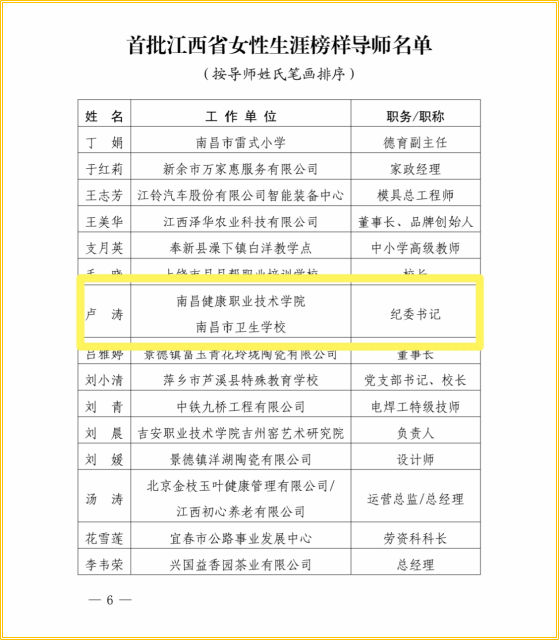 同时,该校纪委书记卢涛被聘任为首批“江西省女性生涯榜样导师”,聘期两年。她将发挥表率作用,为女大学生提供全方位生涯指导,助力女性职业成长。