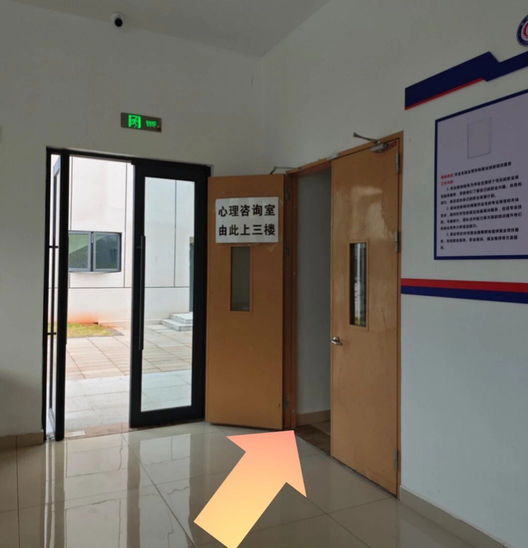 2. 到访指引:心理健康咨询室设于行政办公楼三楼,具体为337室与338室。到访时,请您通过大楼侧面的步梯上行即可直达。详细路径请参见附图。如因调整给您带来任何不便,敬请谅解。