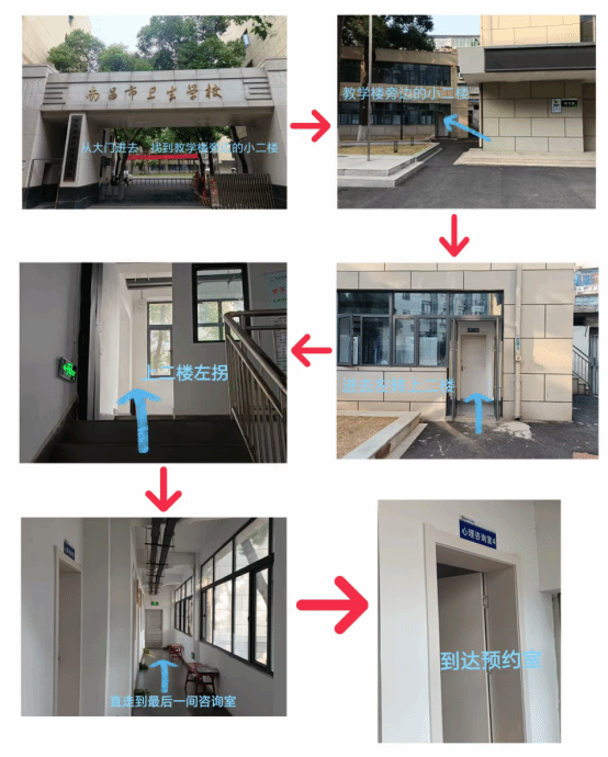东湖校区线下咨询地点设在小二楼心理咨询室(东边第1-4间),跟随指引图片,轻松找到属于你的心灵栖息地。在这里,面对面,心贴心,让改变悄然发生。