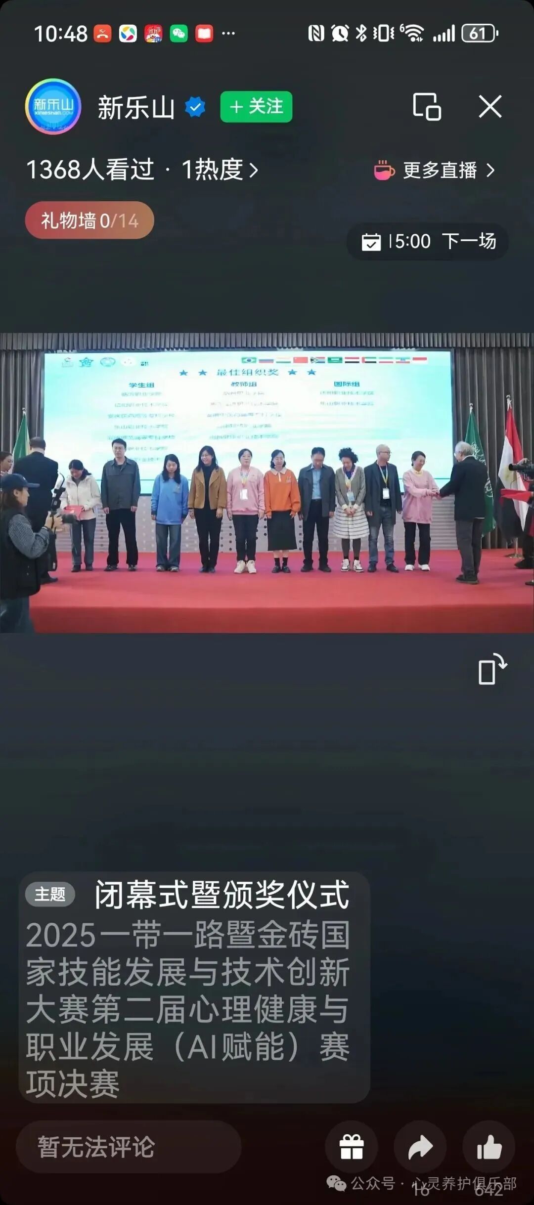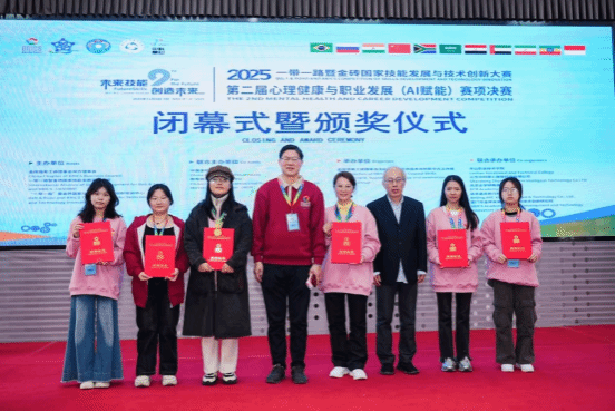 闭幕式颁奖环节,余琳燕多次代表学校登台领奖,每一次亮相都是对我校心理健康教育工作的高度认可,更是对全体师生攻坚克难、奋勇争先精神的充分肯定。尤为振奋人心的是,我校成功斩获2026一带一路暨金砖国家技能发展与技术创新大赛北非国际赛晋级资格,为学校心理健康教育走向国际化舞台搭建了重要桥梁。这一突破不仅是对我校现阶段育人成果的有力印证,更标志着我校在心理健康与职业发展教育领域的探索迈入了全新阶段。