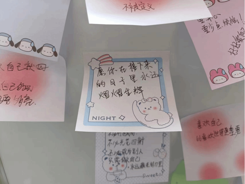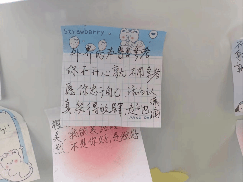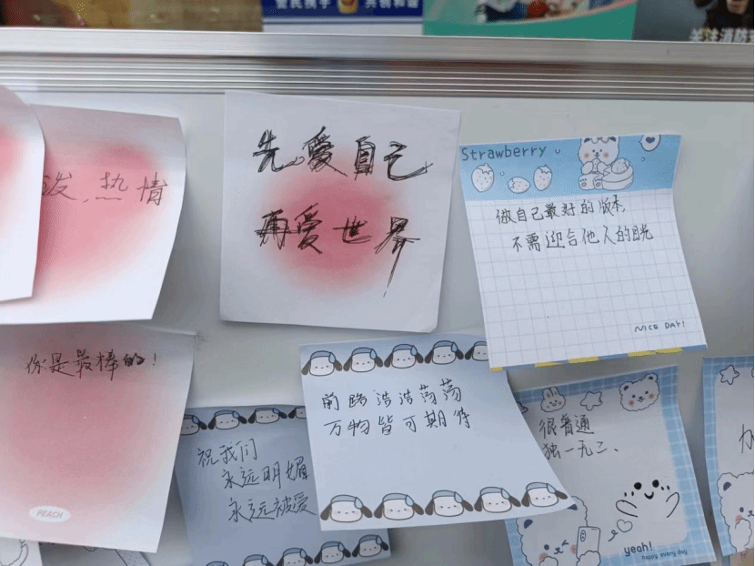 活动现场非常热闹,同学们的积极性、参与度很高。大家在便利贴上写下鼓励的话语,将便利贴粘贴到白板上,一张张便利贴汇集到一起,充满着温情和鼓舞,此次活动圆满结束。