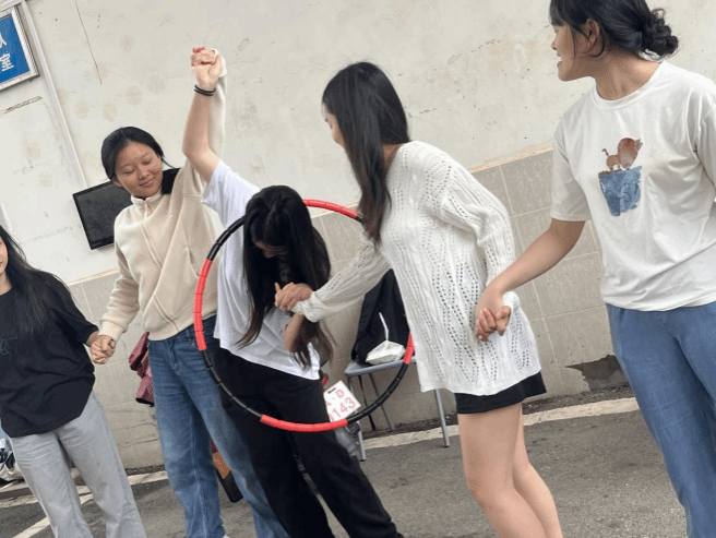 此次活动设置了马兰花开、穿越呼啦圈和快乐传真3个项目,参加活动的同学首先在马兰花开环节中相互熟悉,在穿越呼啦圈环节团结协作,在快乐传真环节中培养默契。