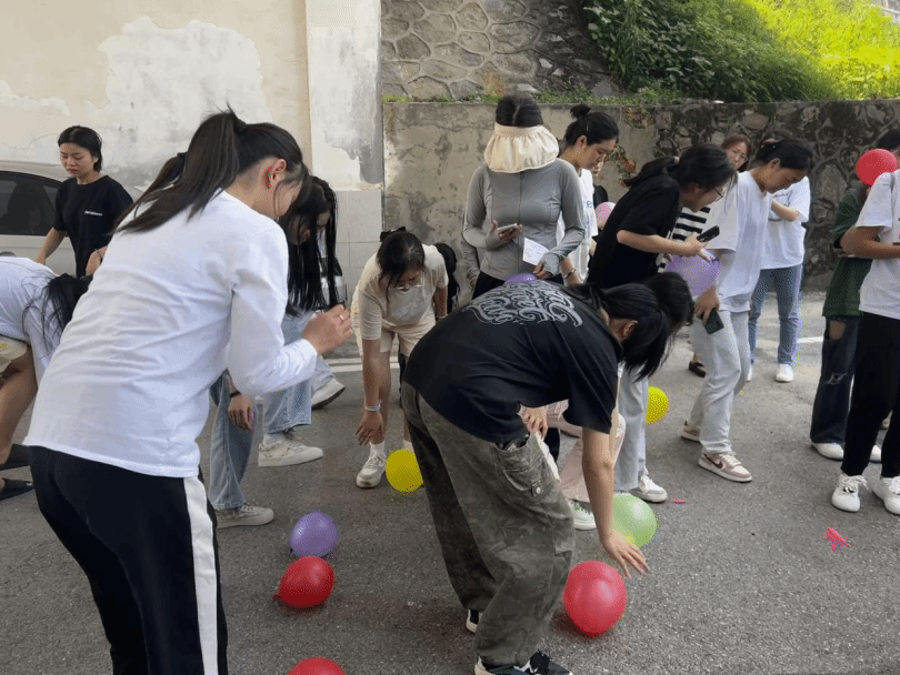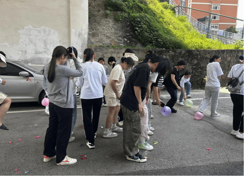活动现场喜气洋洋,处处都是同学们的快乐身影。“和所有的烦恼说拜拜”活动通过写下烦心事,把负能量装进气球,将气球吹起绑好,最后跟着指令统一踩爆气球,让自身的压力、释放都随着气球一起消散。