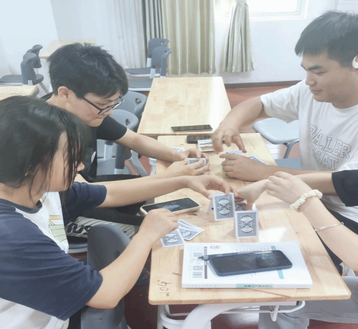 在“垒高塔”活动中,同学们积极交流搭高塔技巧,提出自己的创新想法。本次活动丰富了同学们的课余生活,其团队协作能力也获得了提升。