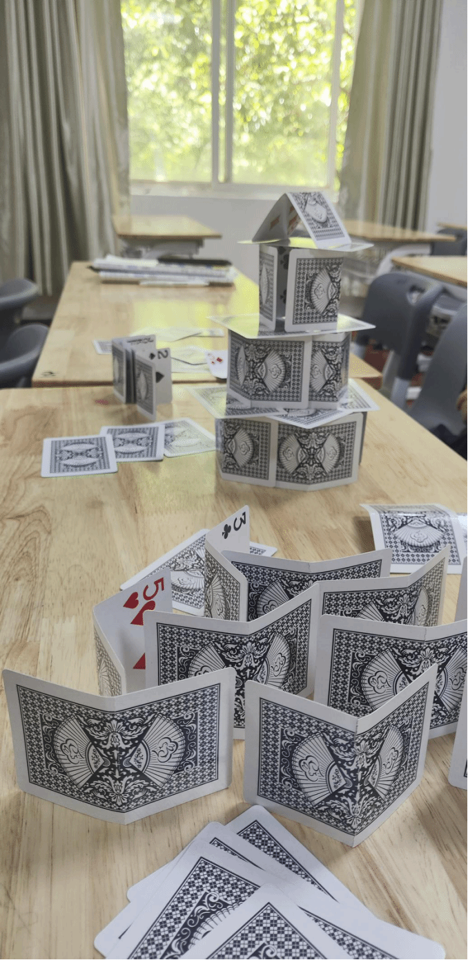垒高塔活动是一种既富有创意又富有挑战性的团队建设活动。其核心理念在于通过团队协作,共同完成一项看似复杂但充满乐趣的任务,以此达到锻炼团队协作能力、提升创新思维的目的。此次活动要求4人为一组,每组一盒扑克牌,将扑克牌搭建成高塔,把高塔搭建最美观牢固的小组获胜。