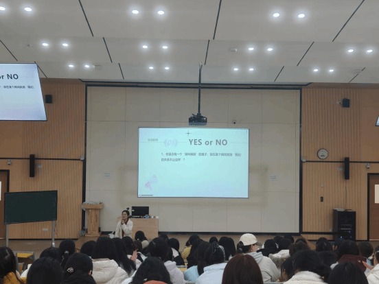 讲座开始,胡老师以“YES or NO”趣味互动破冰,邀请学生用手势表达是否曾处于“搭子以上,恋人未满”的关系状态,迅速引发共鸣、打开话题。胡老师指出,“搭子关系”作为一种低门槛陪伴,虽能缓解孤独,却也常伴随“想靠近又怕越界”的内心拉扯与情感消耗,是当前大学生群体中普遍存在的“关系谜题”。